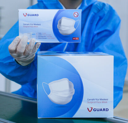 Les masques faciaux sont produits en Turquie et ont une certification « EN 14683 TYPE IIR CE » avec un taux de filtration de 98,6 %.