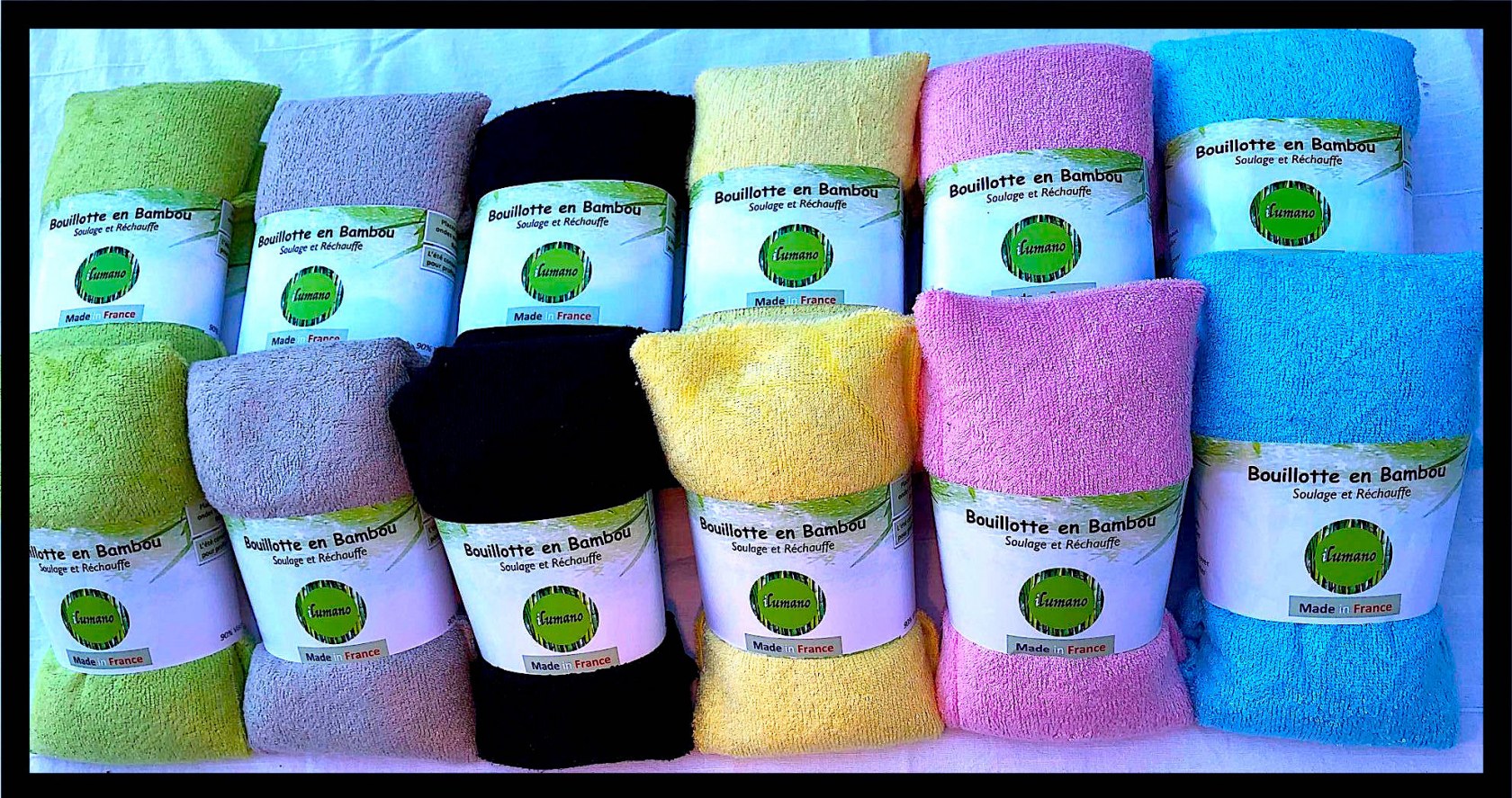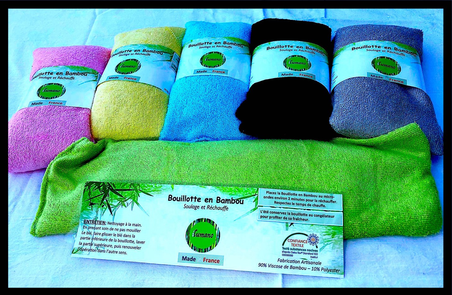 Vente en gros, Bouillotte à mettre au micro-onde en viscose de bambou et remplie de blé.