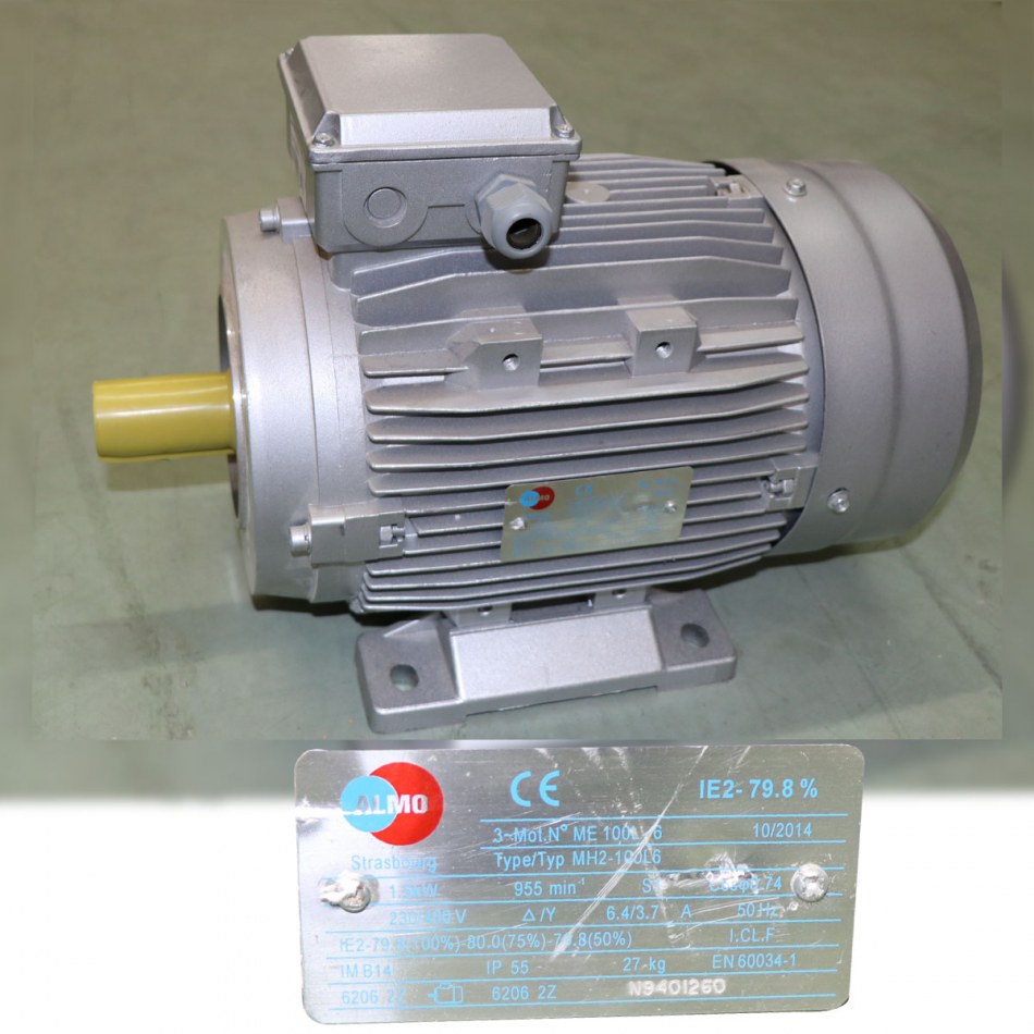 6. Moteur électrique triphasé IE1 B14 1.5 KW 220/400, 1000 Tr/min, arbre diamètre 28mm - Tarif déstockage : 102.40 € HT soit 122.88 € TTC au lieu de 128.00 HT.
