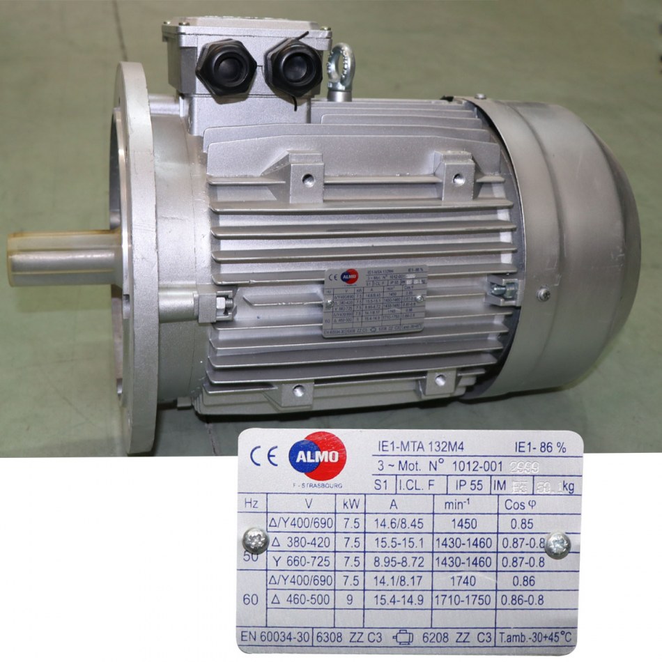 3. Moteur électrique triphasé IE2 B5 7,5 KW 400/690V, 1500 Tr/min - Tarif déstockage : 336.80 € HT soit 404.16 € TTC au lieu de 421.00 HT.