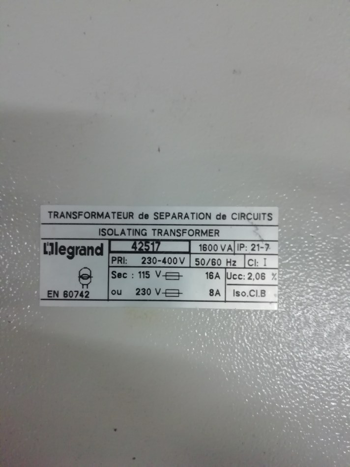 TRANSFORMATEUR ISOLATION CIRCUITS LEGRAND 1600 VA