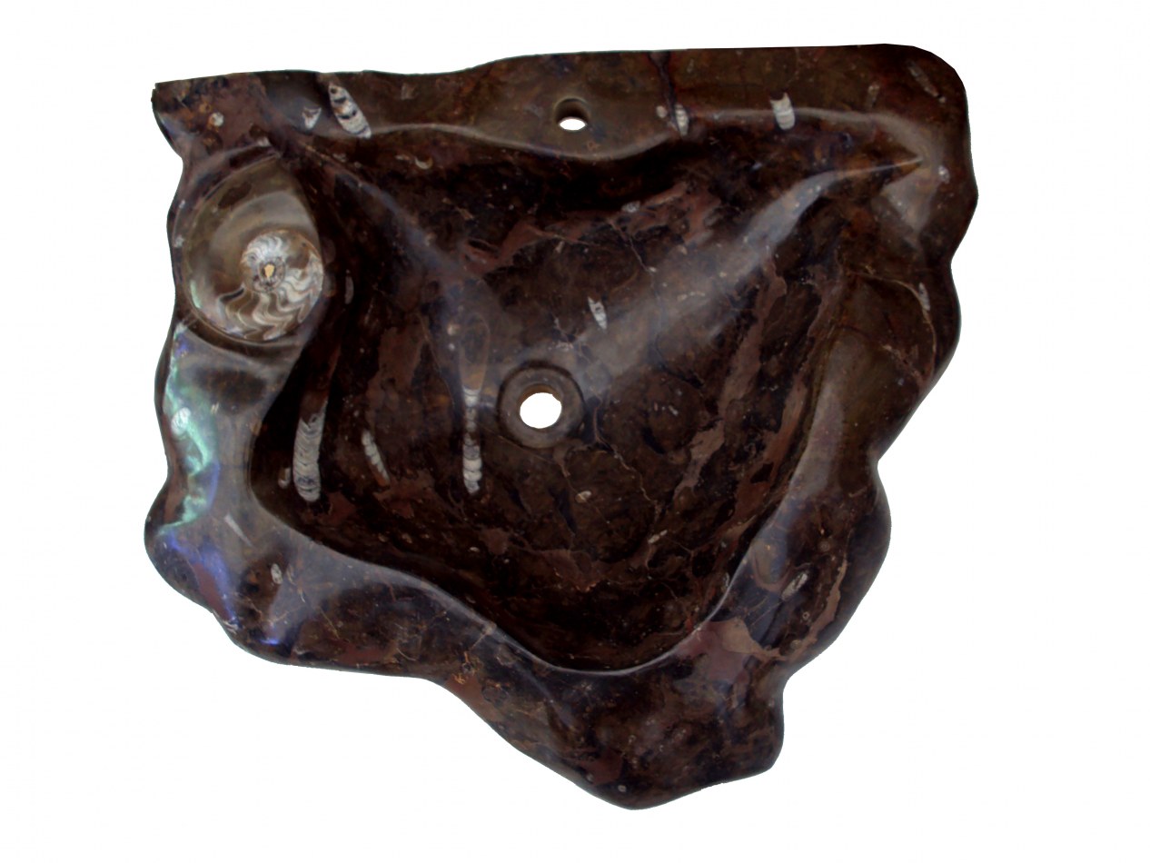 Vasque à poser amorphe en pierre d'Erfoud fossilisé préhistorique