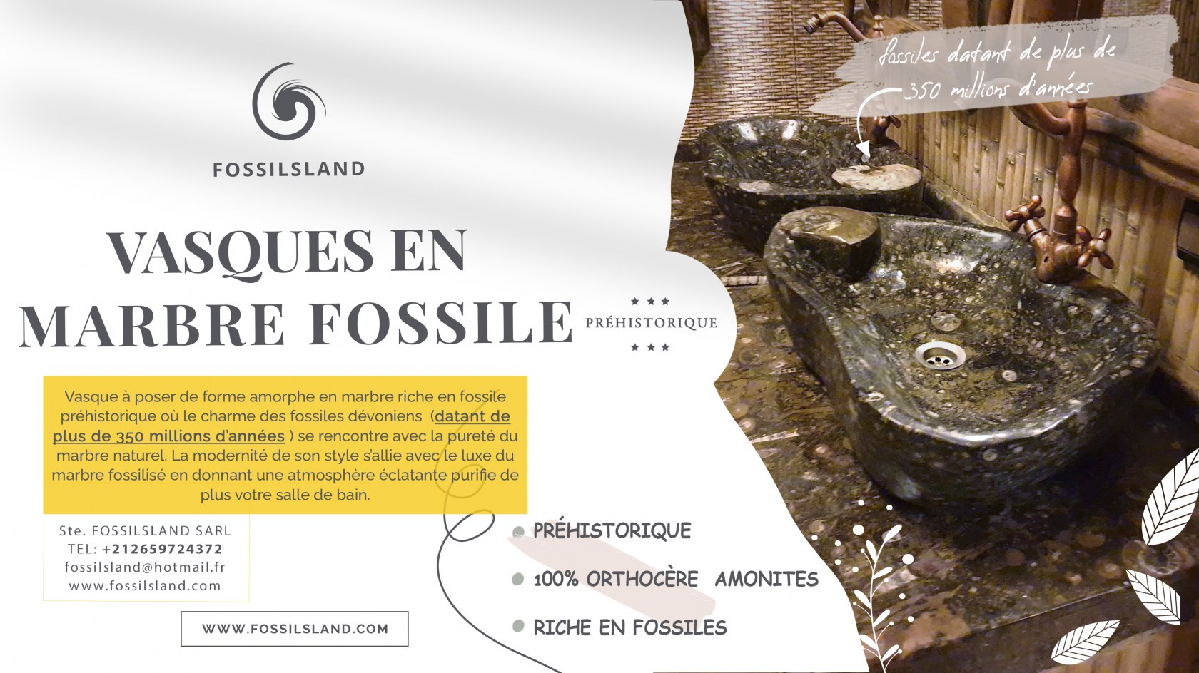 Pour plus d'infos visitez la page détaille de ce lavabo sur notre site: Vasque à poser amorphe en pierre d'Erfoud fossilisé