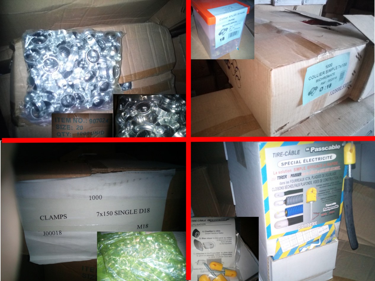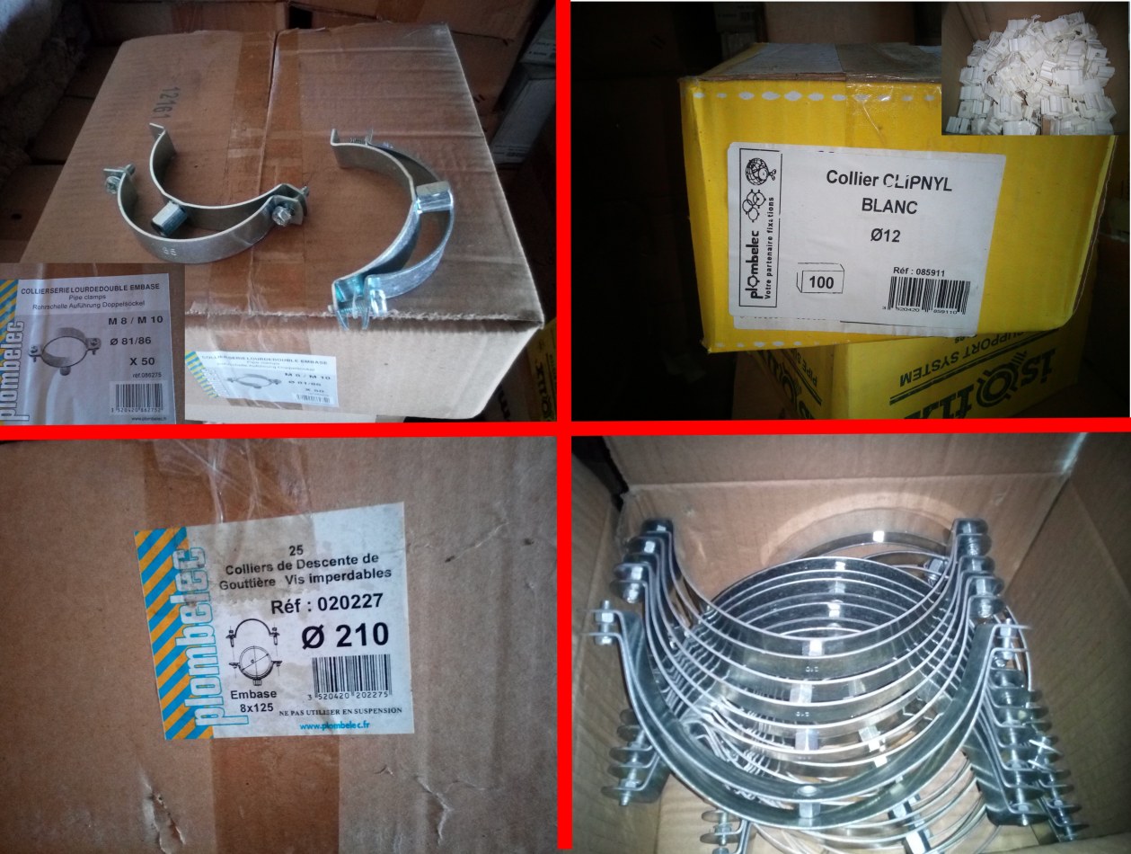 DESTOCKAGE demie Palette de Plomberie, colliers Ø8, 18, 81, 210 Patte à vis, tire câble...