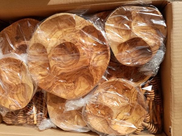 Plus que 4000 pièces d'artisanat en bois d'olivier sont à vendre, ils s'agissent d'articles variés (planches à découper, saladiers, coupelles de pain, raviers, couverts, savonnières, pots de miel avec cuillères, supports papiers, sous tasses, sous plats etc...