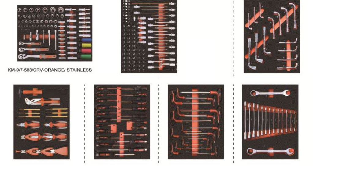 Modèle : km-7-6-540FB Racing Flex Orange Tool Cabinet avec ensemble d'outils de 540 pièces, clé dynamométrique supplémentaire, gants supplémentaires gratuits.