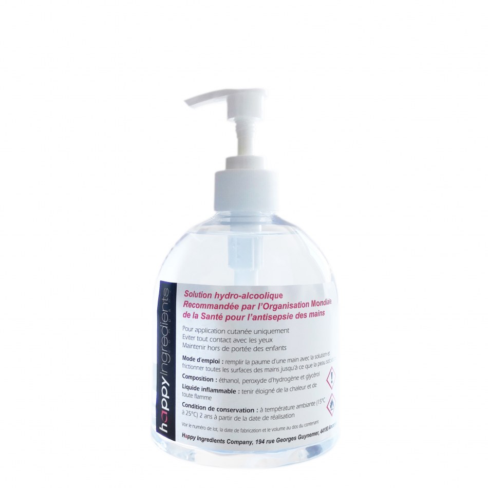 DESCRIPTION: Solution hydroalcoolique à base de 96% d'alcool, conformément à la formulation recommandée par l'OMS (Organisation Mondiale pour la Santé).