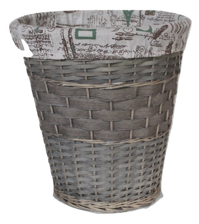 Panier à linge en osier ,intérieur en tissu imprimé,diamètre 42 hauteur 45 cm.