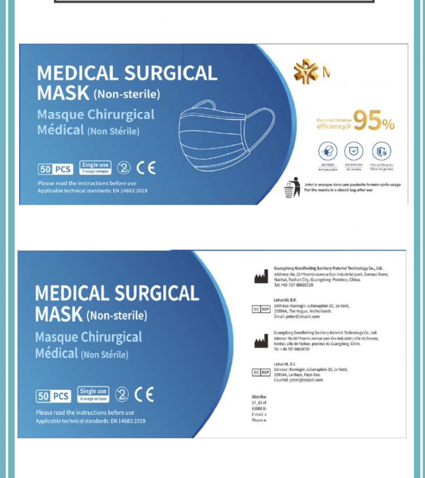Carton de 3000 masques, palettes de 20 cartons (60 000 masques).