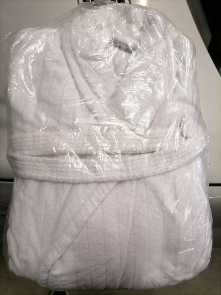 Peignoirs recyclés blancs emballés
