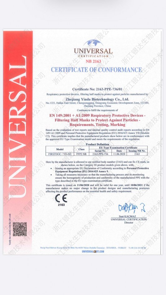 La protection respiratoire de classe ffp2 nr est un masque pliable confortable. Le protège-dents se trouve près du visage et couvre à la fois la bouche et le nez. Protège contre les particules solides et les aérosols, jusqu'à 95% des particules. Le masque est à usage unique. Approuvé selon en149: 2001 + a1: 2009. Entièrement certifié CE 2163. Chaque masque de l'emballage est emballé individuellement dans un sac en pp scellé.