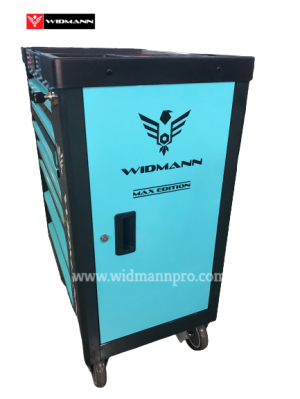 SERVANTE A OUTILS WIDMANN MAX EDITION Choix du nombre de tiroirs complétés 7/7 -7/6 - 7/5 DISPONIBLE EN NOIR, ROUGE, ORANGE, BLEU, BRUN Tous nos produits sur: www.widmannpro.com