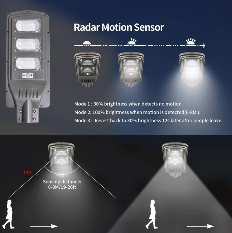 Projecteur solaire 90w triple led avec détecteur de mouvement +télécommande