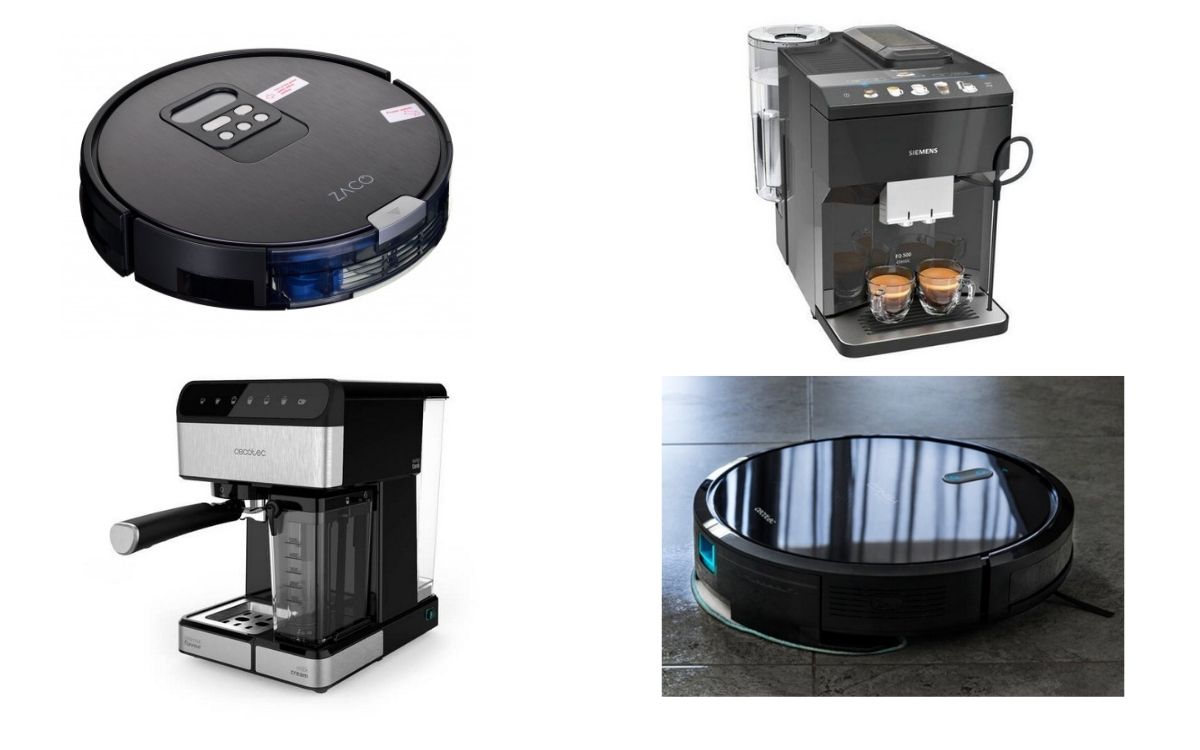 Le lot est constitué de machines à café et d'aspirateur sans fil ainsi que d'autres outils et machines pour la cuisine.