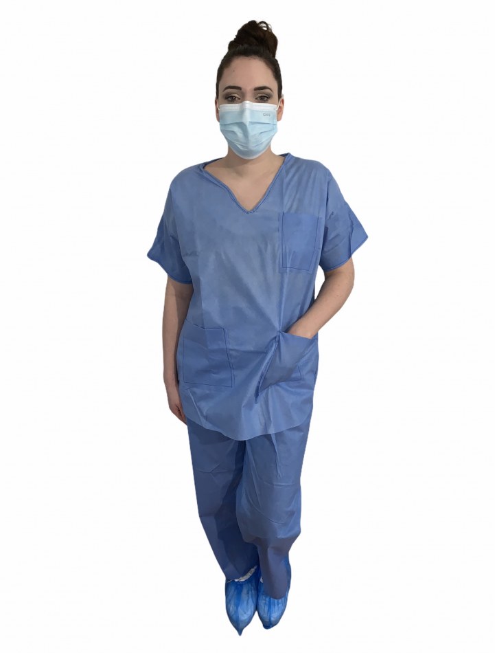 - Pyjama de bloc opaque non tissée PP 35g/m² à manches courtes et à col triangulaire