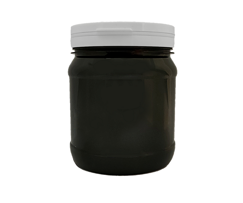Pots PET Noir rond col clibale, contenance 1L avec son couverlce Blanc adapté.