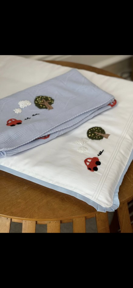 Özenle el işleme bebek battaniyeleri yapılır