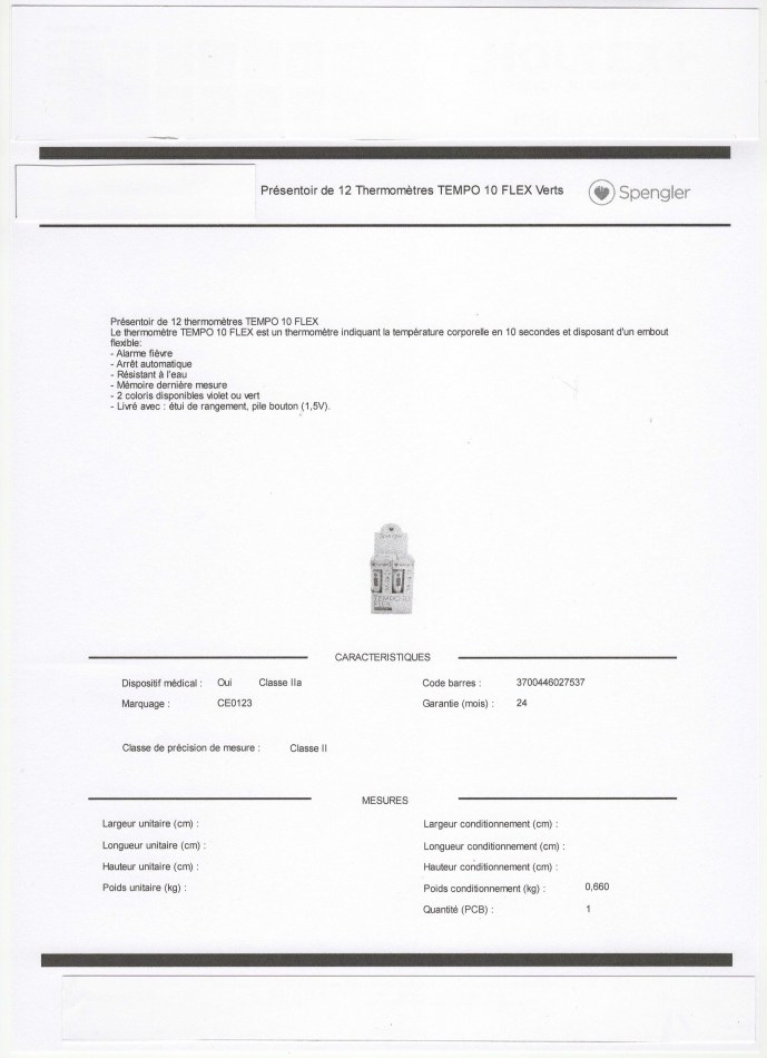 VENDS LOT THERMOMETRE FLEXIBLE SPENGLER TEMPO 10
