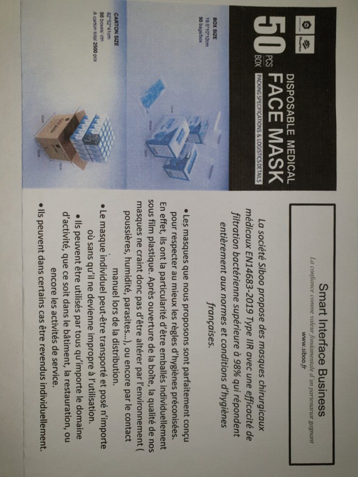 à vendre lot de 14000 boites de masque medical certifiie emballage individuel par masque