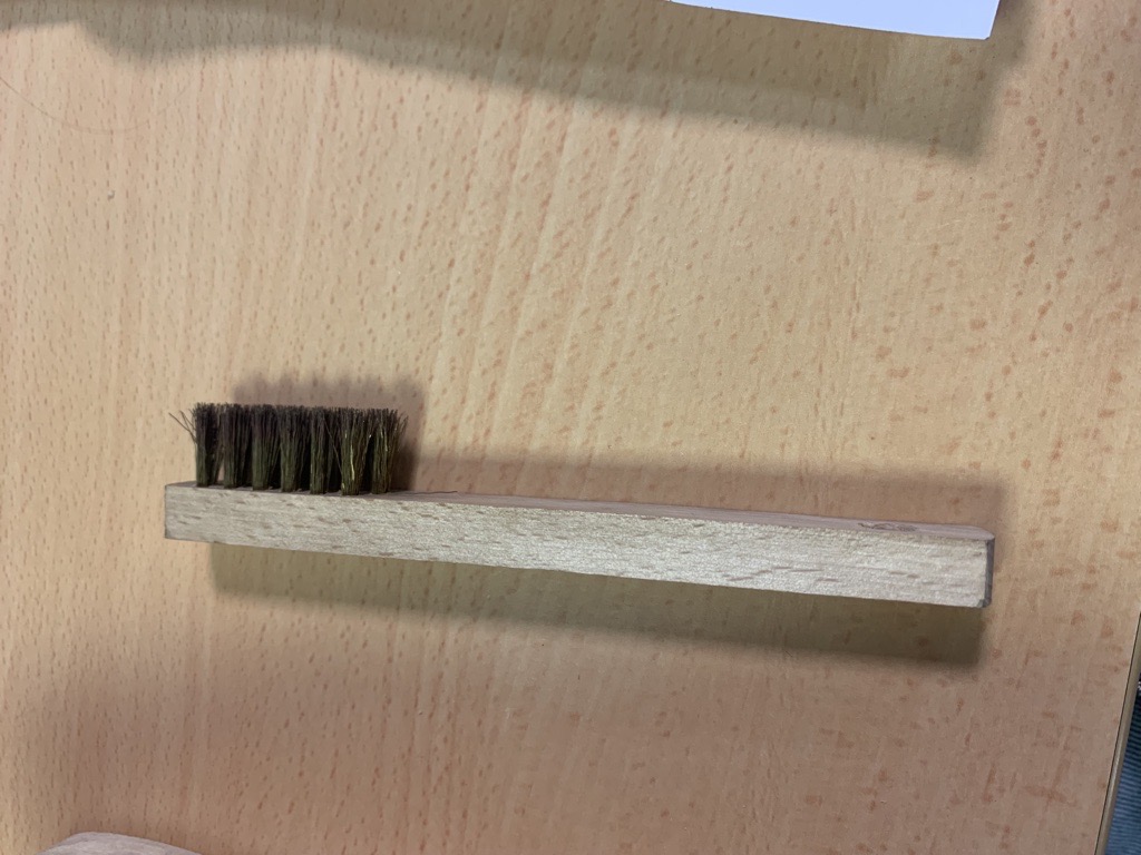 La brosse est idéale pour les travaux de brossage fin. Elle est est utilisée lorsqu'une brosse à fil souple et fin est nécessaire, par exemple pour le nettoyage des électrodes et des contacts des bougies d'allumage. La brosse posséde 3 rangées de fil de laiton ondulé et un manche en bois de hêtre.