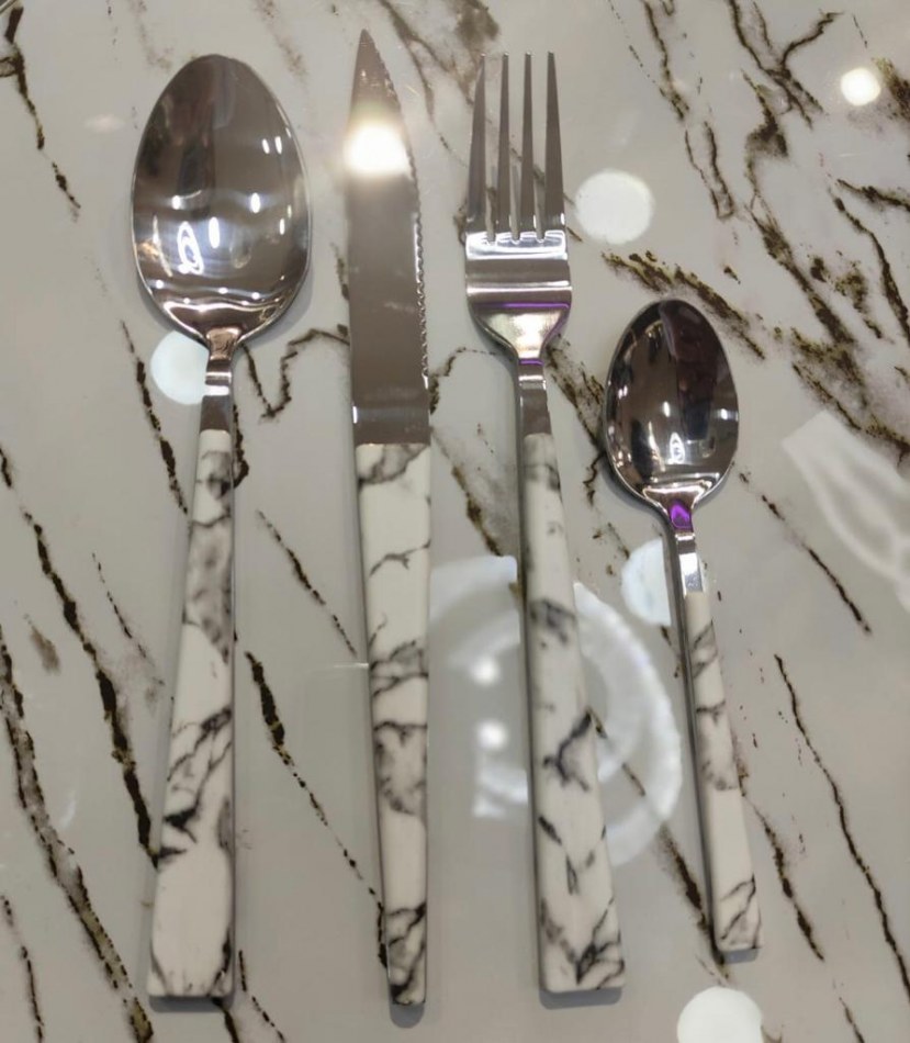 MÉNAGÈRE / COUVERT DE TABLE 24 PIÈCES EFFET MARBRE NOIR OU BLANC /ARGENTE
