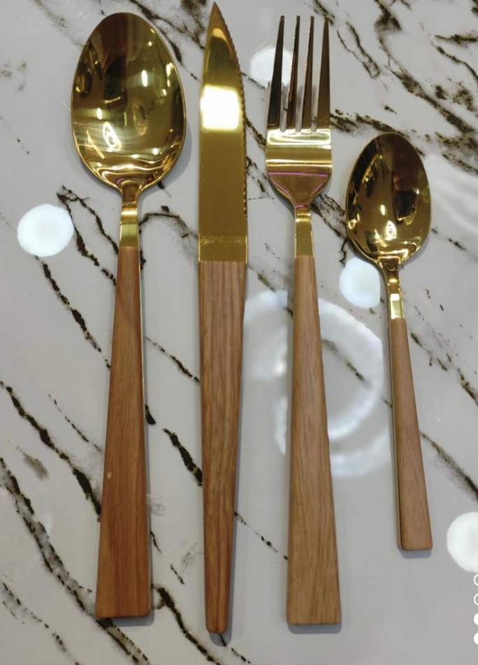MÉNAGÈRE / COUVERT DE TABLE 24 PIÈCES EN BOIS/DORÉ OU ARGENTE