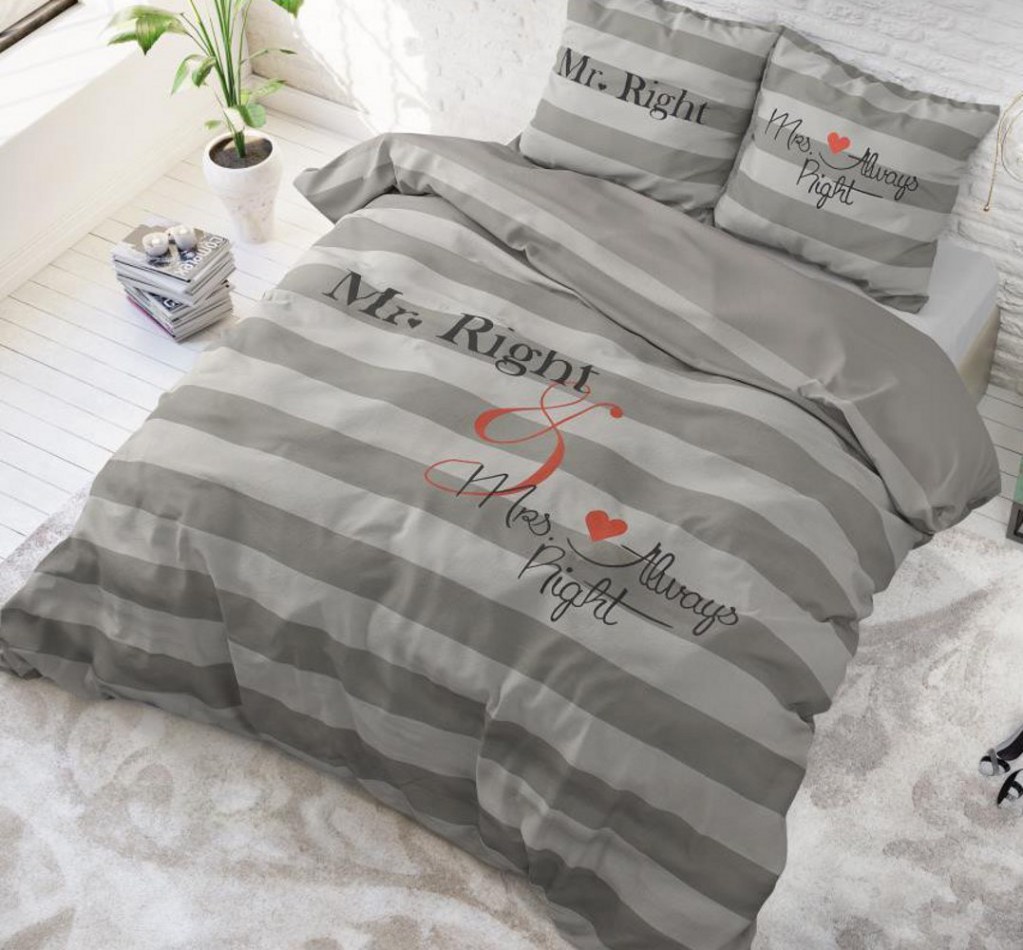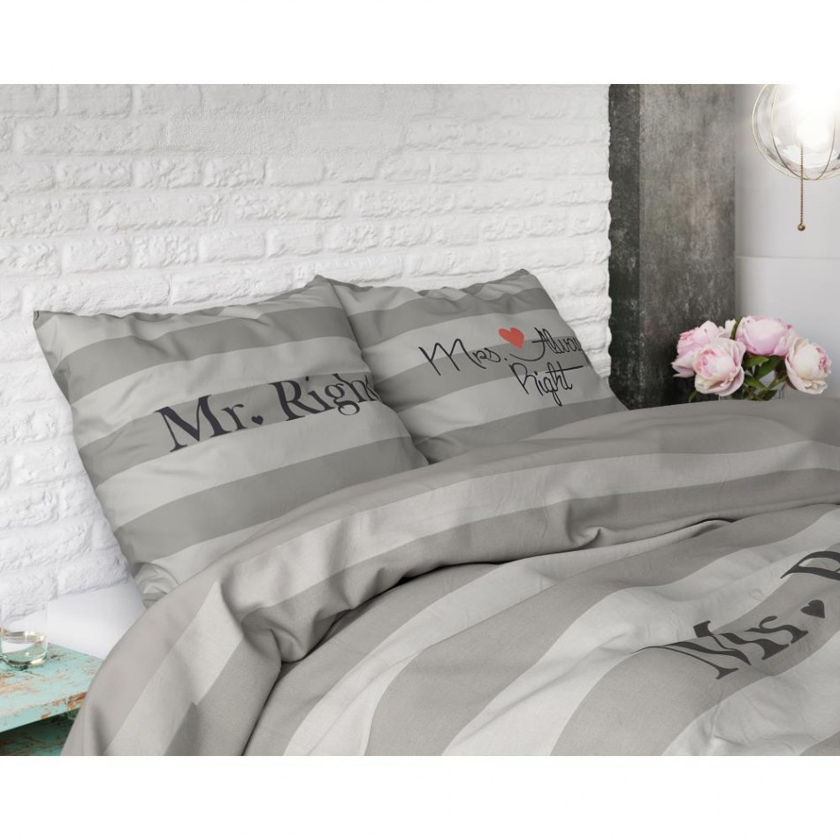 "Mr&Mrs Always" Gris Set 2/3 pcs Parure de Lit 100% Coton Housse de Couette+Taie d'Orei...