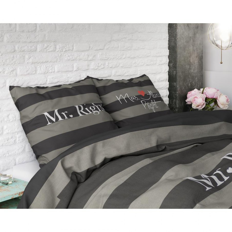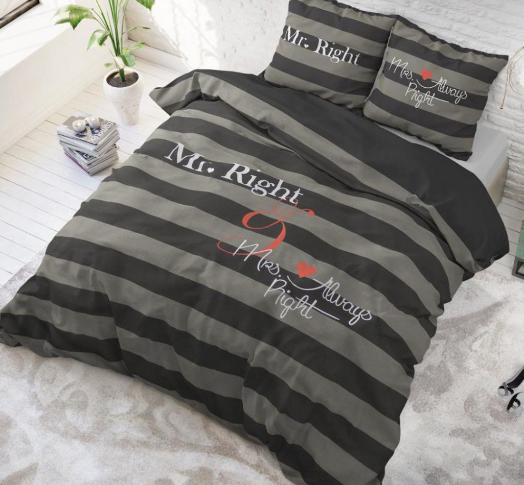 "Mr & Mrs Always" Anthracite Set 2/3 pcs Parure de Lit 100% Coton Housse de Couette+Tai...