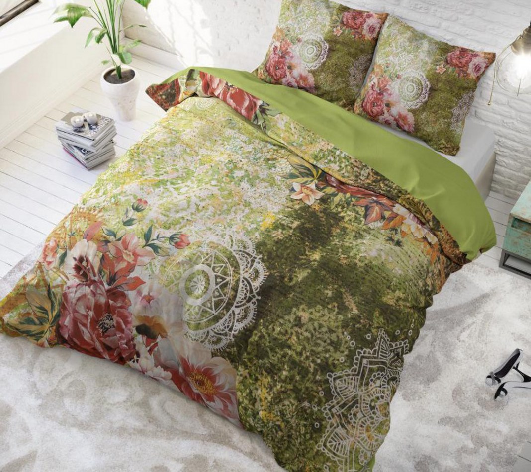 "Green Flower Art" Set 2/3 pcs Parure de Lit 100% Coton Housse de Couette+Taie d'Oreill...