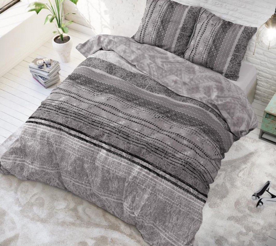 "Melila" gris Set 2/3 pcs Parure de Lit Coton Mélangé Housse de Couette+Taie d'Oreiller