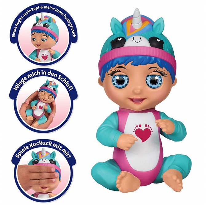 Il tient dans le creux de la main Il réagit au toucher, au mouvement et à la lumière Ses yeux s'ouvrent et se ferment et ses bras bougent Faites des bisous, bercez-le, mais si vous le chatouillez trop vous aurez une suprise Parle en Français