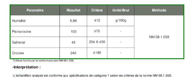 Safran Bio en Stigmates séchés - Catégorie 1