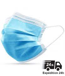 Masque de protection 3 plis avec bords soudés, 2 élastiques oreilles, soudures orientées vers l'intérieur et pince nez.