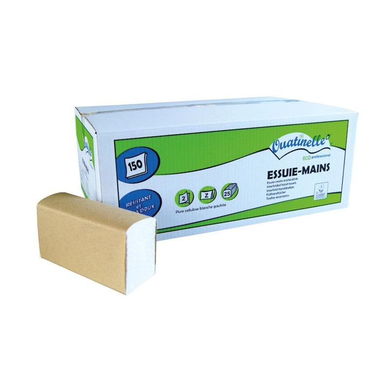 Essuie-mains plié en Z microgaufré| 2 plis | 22 x 23 cm | 150 formats
