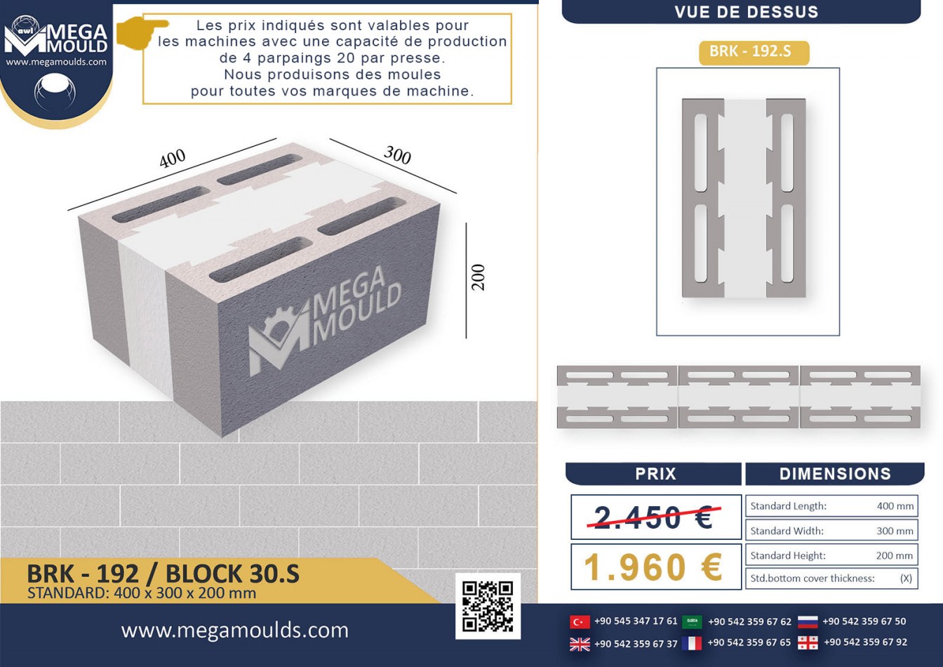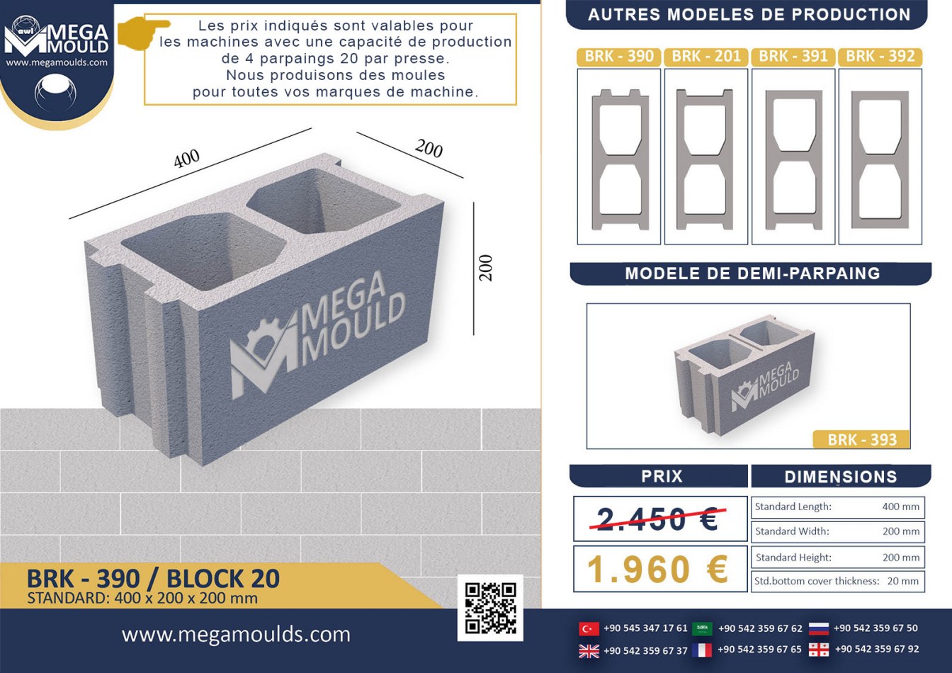 Les prix indiqués sont valables pour les machines qui produisent 4 parpaings 20 en une presse. Nous fabriquons pour toutes les marques et modèles de machines.