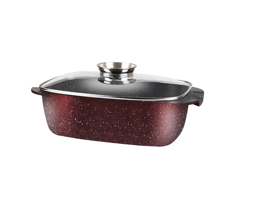 Rôtissoire , braisière en Pierre de- 35 cm, convient pour Tous Feux y compris le four. Ce rôtissoire réalisée en façon pierre est ultra-utile en cuisine. Le modèle présente une base facile à transporter ainsi qu'un revêtement antiadhésif effet pierre qui vous permettra de réaliser de délicieuses préparations culinaires au four traditionnel. Couleur : Noir ou bordeau.
