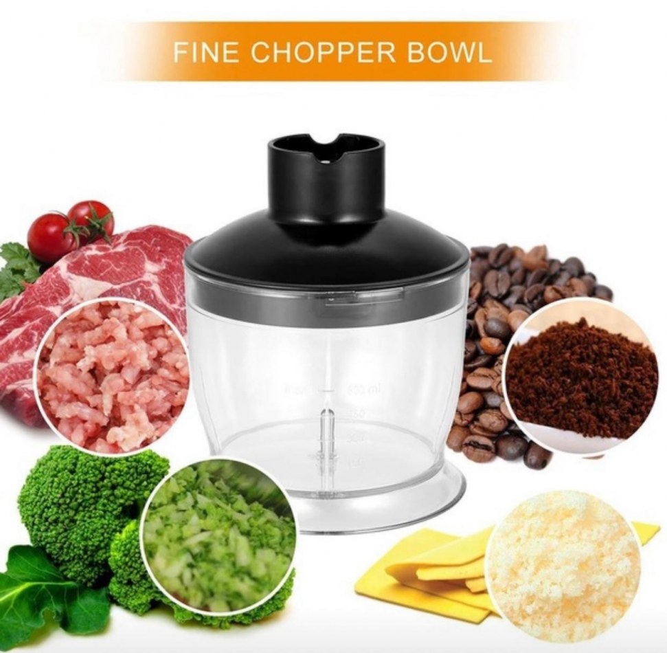 Mélangeur à main en inox, hachoir multiple et fouet, il possède un Moteur puissant , Fouet en inox amovible Mixeur plongeant en inox et hachoir multiple, 0,5 l Comprend un récipient de mélange de haute qualité ( 650 ml)
