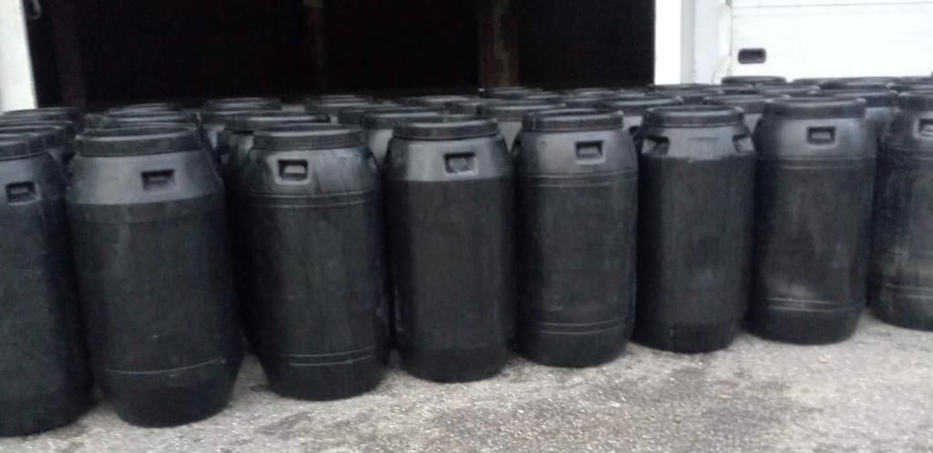 Je propose des fûts (bidons) de 270 litres en plastique alimentaire noir.