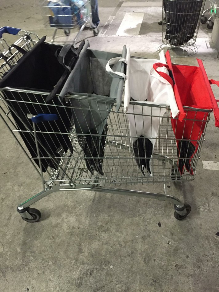 les 4 sacs épousent parfaitement la forme du caddie afin d'y mettre ses courses.