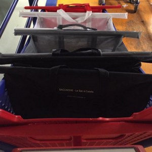 SACCADIES (sacs pour caddies). Chaque lot contient 4 sacs arrachés par scratch les un aux autres et de tailles différentes.