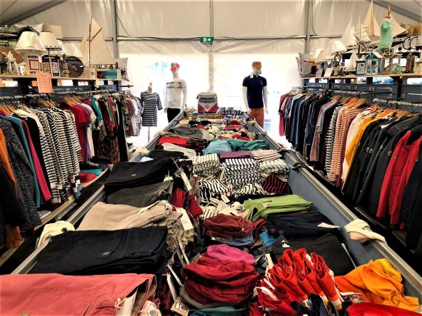 Vêtements et accessoires de mode à thème marin. Articles de décoration. Conserveries liées à la mer, vaisselle au look marin.