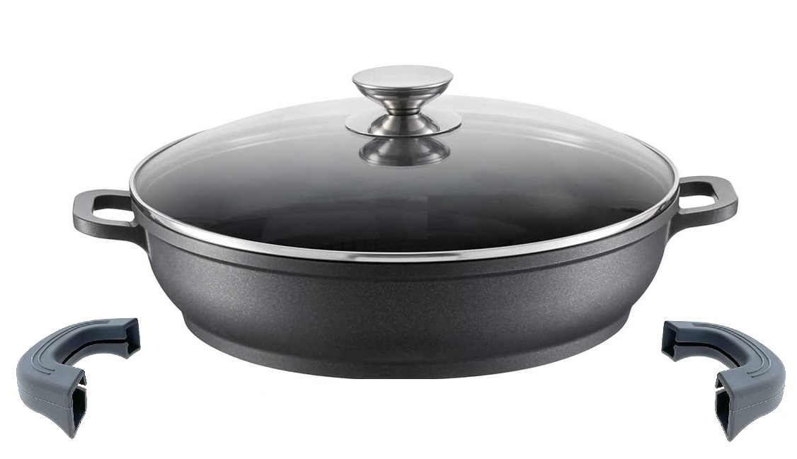 SAUTOIR Faitout Bas avec Revêtement Marbre, Couvercle en verre, Induction
