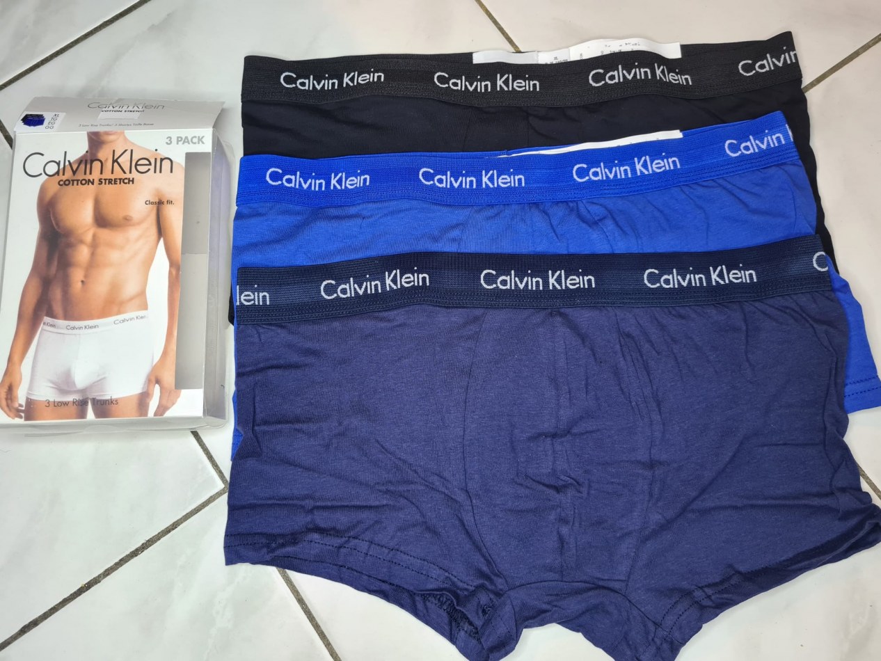 Je vends le restant de mon stock de boxer Calvin Klein. Il s'agit de pack de 3 boxer : bleu foncé, bleu clair et noir.