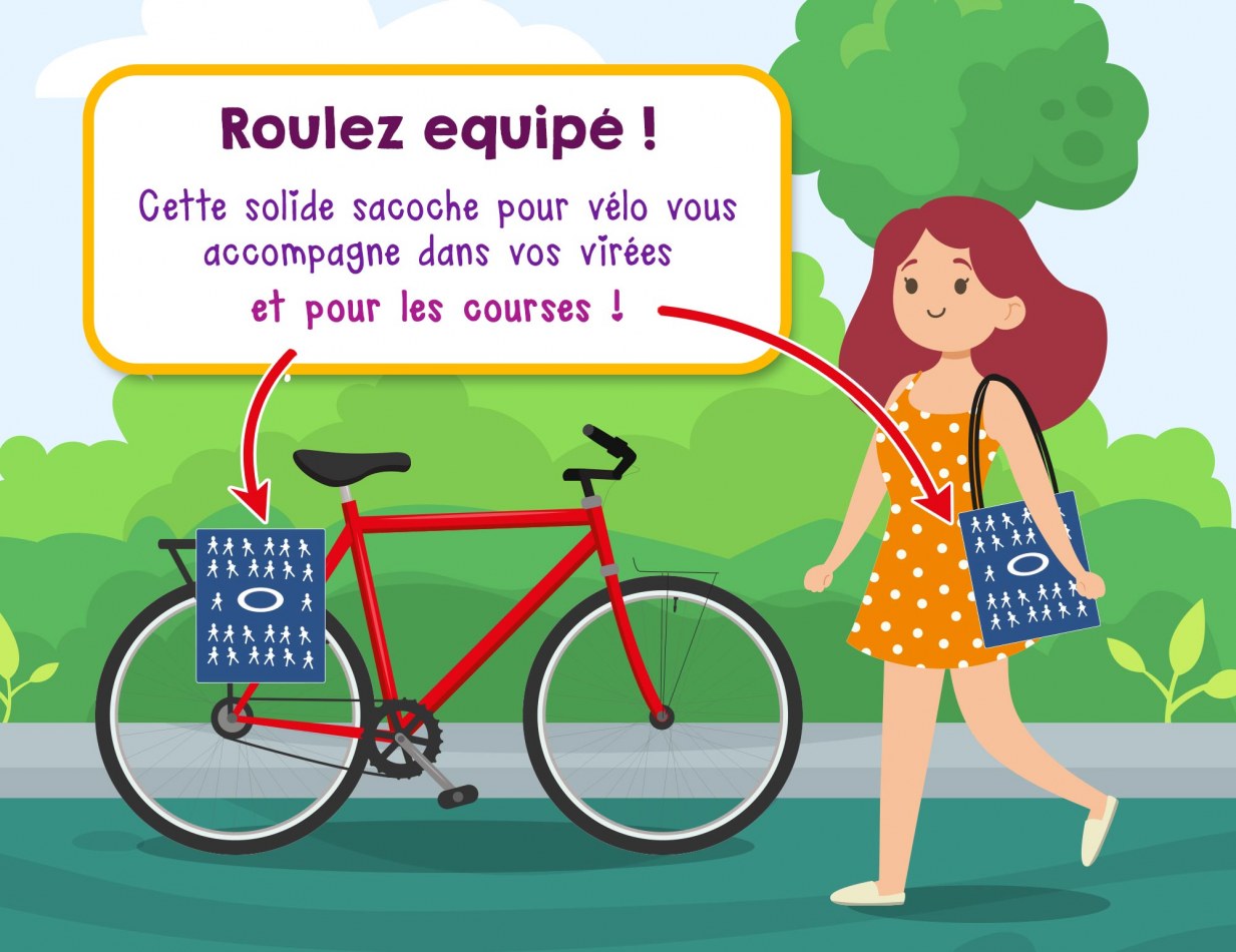 Super pratique, le sac peut être clipsé sur le porte bagage grâce aux deux petites attaches, ou transporté à l'épaule grâce à son anse réglable. Le grand rabat à scratch assure une bonne fermeture du sac.
