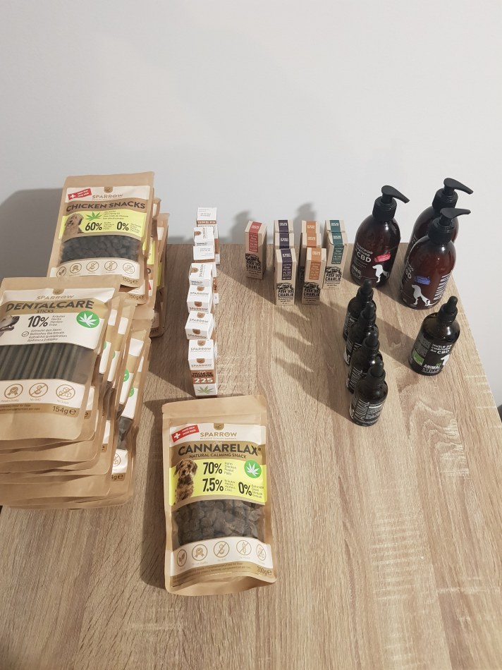 Dans le lot il y a des huiles aromatisés, des huiles natures, des friandises et des shampoings , tout à base de CBD avec un taux de THC à 0.