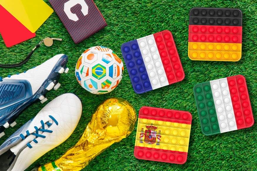 Pop it en silicone drapeaux à l'effigie des champions du monde . France , Italie , Espagne, Allemagne lot de 4