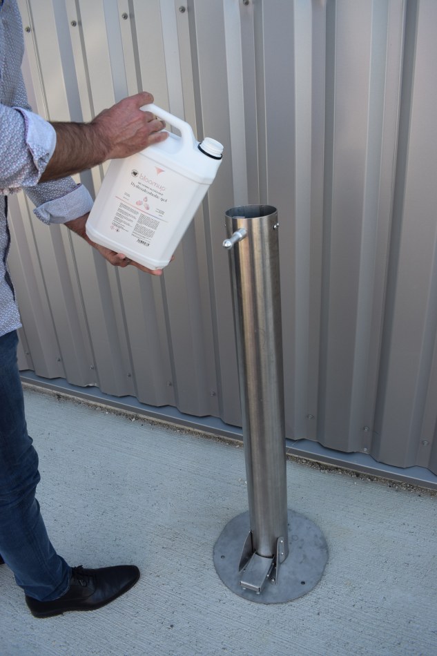 • La borne à action mécanique STAM'GEL Drop&Go permet de distribuer des solutions hydroalcooliques* sans contact avec les mains et en libre-service.