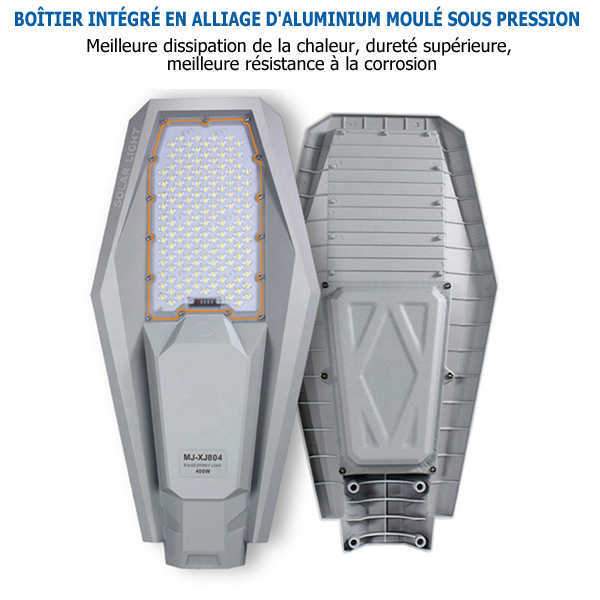 Il utilise la meilleure technologie LED : des lentilles lumineuses à billes avec un angle d'éclairage de 180 degrés. La norme IP67 indique que le produit est totalement imperméable à l'eau et à la poussière. Le luminaire peut fonctionner en hiver comme en été grâce à sa conception pensée pour mieux résister au gel et à la chaleur. Son revêtement en alliage d'aluminium offre une plus grande résistance à la corrosion tout en permettant une dissipation plus rapide de la chaleur.