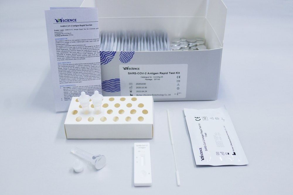 Test antigenique marque UNScience, certifié HAS, 100000 stock à Paris, prix 1.05€