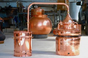 Alambic à bain marie martelé à la main, composé de chaudière, à double paroi avec entrée d'eau, vanne de pression et vidange du bain marie. le chapeau à joint d'eau, posé sur la cuve (dans la gouttière), relié au col de cygne la cuve de refroidissement avec son serpentin intégré L'alambic à bain marie a une double paroi. Cela permet d'empêcher le moût d'attacher, car la chaudière n'est pas en contact direct avec le feu. Pour cela, il faut remplir le vide entre les parois avec de l'eau, ce qui fait office de bain-marie. L'alambic à bain marie bénéficie d'une ouverte large permettant de remplir la cuve et de la nettoyer facilement. Cet alambic permet une distillation très professionnelle et est recommandé pour la distillation de votre moût de prunes, poires, cerises, etc... Grâce à la légère pression de ce système de bain-marie il est tout de même possible de distiller à près de 100°C et vous pouvez sortir le maximum d'alcool de votre moût. Si vous désirez distiller à des températures plus élevées, vous pouvez aussi remplir la double paroi d'huile. Vous pourrez ainsi atteindre des températures supérieures Réglementation: Nous vous prions de tenir compte des lois en vigueur dans votre pays avant de passer votre commande. Dans certaines conditions, l´acquisition et l´utilisation d´un alambic peuvent être sujettes à une réglementation stricte. j'assume pas la responsabilité des problèmes pouvant provenir des services administratifs ou douaniers, en rapport avec la livraison ou l´utilisation de nos alambics et dispositifs de distillation. Modèle bain marie pour les fruits thermomètre compris et grille de séparation 10 litres 450€ en stock 20 litres 720€ sur commande 40 litres 1130€ sur commande 60 litres 1550€ sur commande 80 litres 1750€ sur commande 100 litres 2100€ en stock Modèle colonnes pour huile essentiel thermomètre compris et grille de séparation 10 litres 390€ en stock 20 litres 550€ sur commande 40 litres 750€ sur commande 60 litres 900€ sur commande 80 litres 990€ sur commande 100 litres 1250€ en stock possible jusqu'à 500L (les prix sont hors livraison ) (livraison toutes la France avec numéro de suivi)